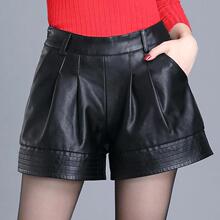 【天天特价】高腰皮短裤女秋冬休闲裤大码显瘦纽扣修身PU皮靴裤潮