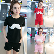 2017夏季新款女装休闲运动套装女短裤潮大码时尚宽松笑脸运动服女