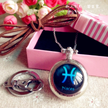复古怀表十二星座项链男女星空毛衣链翻盖贴照片本命年圣诞节礼物