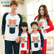 小情歌春秋季长袖棉质亲子睡衣情侣家居服一家三口家庭装家居服