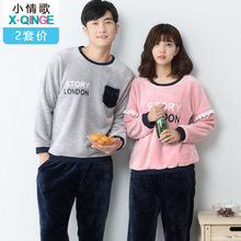 两件套小情歌秋冬季珊瑚绒情侣睡衣女家居服男加厚法兰绒睡袍套装