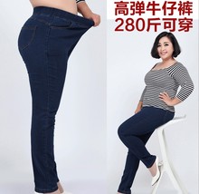 超大码女装 胖mm春装 高腰弹力牛仔裤 加肥外穿裤 200*250斤长裤