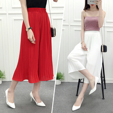2017新款百搭夏季雪纺百褶裤裙阔腿裤女学生韩版宽松大脚裤七分裤