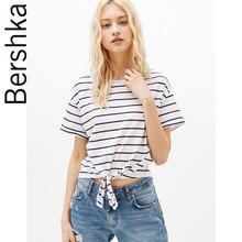 Bershka 女士 2017夏季新款宽松上衣圆领条纹短袖T恤 02636987401