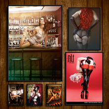 酒吧装饰画旅店墙贴画性感美女卫生间创意挂画欧美人物海报有框画