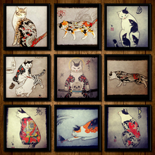 复古海报日本武士刺青猫纹身店装饰挂画贴画个性创意壁画