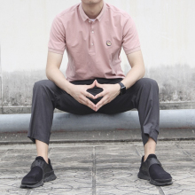 作梦家2017夏季新款原创翻领玩味绣花情侣修身窄领Polo衫短袖男