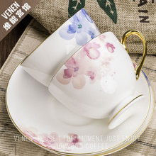 英式风格下午茶杯子 花季骨瓷咖啡杯碟 金边金手柄 粉色蓝色樱花