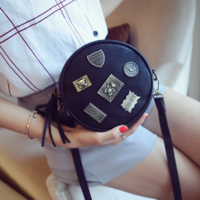 2016春新款斜挎包潮女包单肩斜跨小圆包徽章小挎包迷你圆形小包包
