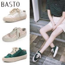 聚BASTO/百思图2017春季布时尚舒适平跟系带女休闲鞋DMS17AM7