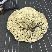 纯手工波浪边春夏可折叠麂皮蝴蝶结装饰便携百搭沙滩帽遮阳帽草帽