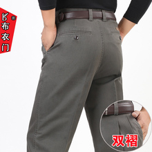春季男士商务休闲裤中老年男裤纯棉厚款直筒宽松爸爸高腰男长裤子