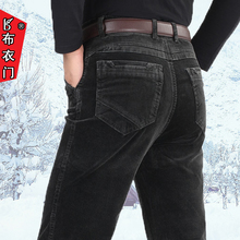 冬季弹力中年男士牛仔裤加绒宽松直筒中老年男裤高腰加肥加大长裤