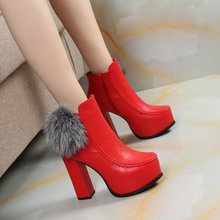 2016新款狐狸毛粗跟短靴防水台短筒女靴高跟马丁靴冬季新品女婚鞋