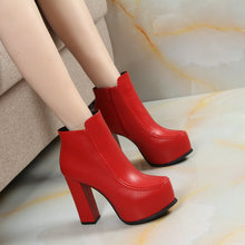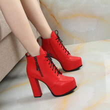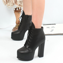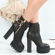 潮2016秋冬新品粗高跟女鞋超高跟马丁靴厚底短靴防水台及裸靴婚鞋