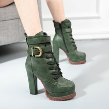 欧美2016潮款军靴超高跟短靴防水台皮带扣粗跟马丁靴厚底女鞋靴子