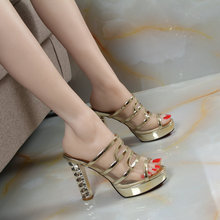 金属跟欧美宴会拖鞋女2017夏时尚高跟鞋凉拖镂空水钻防水台凉鞋潮