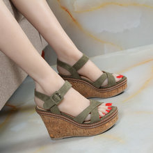 韩版舒适坡跟鱼嘴凉鞋女厚底一字扣防水台高跟鞋夏季潮款女鞋新品