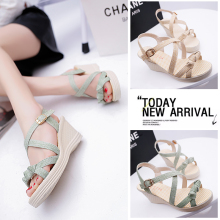 2017夏季新款韩版坡跟鱼嘴鞋罗马凉鞋松糕厚底女学生鞋休闲高跟鞋