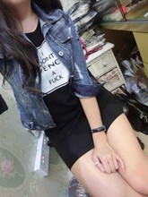 秋款 渐变黑色牛仔外套女 韩版是修身短款长袖弹力