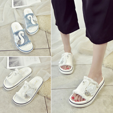 2017夏季松糕凉鞋女牛仔布水钻休闲帆布外穿拖鞋潮新款厚底沙滩鞋