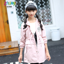 朱阿姨女童秋装外套2016新款中长款学生风衣中大童连帽薄款韩版潮