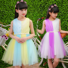 2017夏装新款童装女童连衣裙夏季纯棉彩虹裙子儿童背心公主裙纱裙