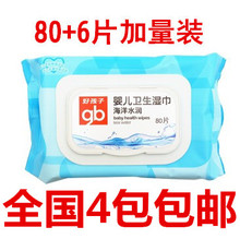 好孩子湿巾 好孩子海洋水润婴儿卫生湿巾 带盖80+6片4包全国包邮