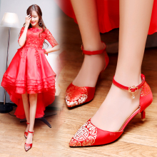 红色结婚鞋子2017新款春季女士孕妇新娘红鞋高跟中式秀禾婚礼鞋夏