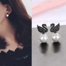 925纯银黑天鹅珍珠小耳钉女韩国简约个性气质百搭耳环耳坠防过敏