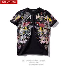 2017春夏季新品男女打底纯棉t恤花卉蝴蝶印花欧美潮牌圆领短袖tee
