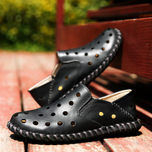 2017夏季新款男士凉鞋时尚休闲两用沙滩鞋真皮透气镂空防滑洞洞鞋