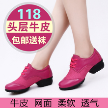 赛彩春夏真皮舞蹈鞋女软底广场舞蹈鞋女网面跳舞鞋现代舞鞋跳操鞋