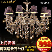 欧式蜡烛水晶吊灯客厅灯现代简约餐厅烟灰色复古简欧大气卧室灯具