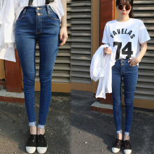 2017春夏季新款韩版高腰牛仔裤女修身显瘦弹力小脚学生铅笔裤子潮