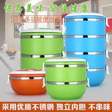 日式多层不锈钢便当盒 双层圆形手提保温桶三层学生饭盒分层餐盒