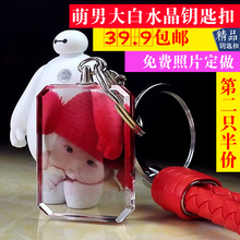 创意照片定制大白水晶钥匙扣链圈男女友七夕情人节侣生日礼物实用