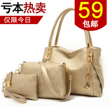 花语佳人2016新款女包时尚压花子母包大包手提单肩三件套包流行