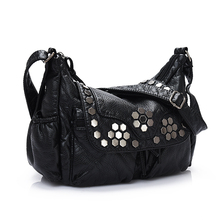 2017韩版时尚女包新款水洗皮铆钉饺子包旅行休闲包单肩斜跨高档包