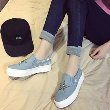 远步2016秋季韩版帆布鞋女 厚底松糕女学生鞋 高帮运动百搭布鞋女