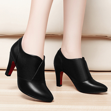尖头细跟高跟鞋2017春秋新款深口单鞋性感中年女士皮鞋中跟妈妈鞋