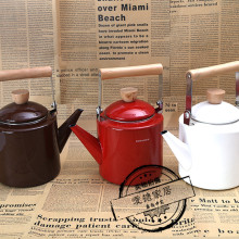 包邮 2L高档搪瓷水壶 珐琅瓷茶壶 木柄搪瓷茶壶搪瓷壶 定制logo