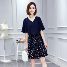 大码夏装女胖mm2017新款胖妹妹女装假两件显瘦印花连衣裙200斤奈