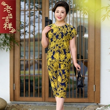 短袖雪纺裙夏装中老年人女装胖妈妈装中长裙40-50岁裙子中年