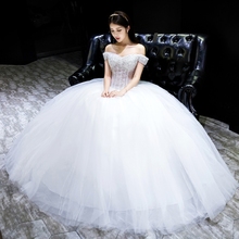 婚纱礼服2017新款春季一字肩宫廷韩式显瘦齐地透视新娘结婚婚纱女