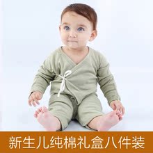 纯棉婴儿棉衣新生儿衣服满月礼盒秋冬宝宝哈衣内衣八件套母婴用品