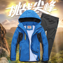 秋冬中大童男装男童运动套装加绒加厚青少年冲锋衣10运动服13岁15