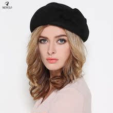 帽子女秋冬英伦时尚宴会帽复古贝雷帽蝴蝶结圆顶毡帽羊毛毛呢礼帽