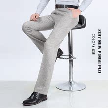 品格保罗男士西裤夏季薄款中年商务正装直筒宽松免烫亚麻西装裤男