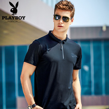 花花公子中年短袖T恤男翻领夏季爸爸装速干装棉t恤宽松大码体恤衫